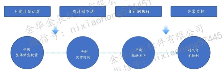 通過計(jì)劃模塊以及MOM的JIT準(zhǔn)時(shí),以及供應(yīng)商協(xié)同保證企業(yè)落地三級(jí)計(jì)劃體系,通過三級(jí)計(jì)劃體系的落地,讓PMC把企業(yè)內(nèi)部的三大物流高效的聯(lián)通和銜接;