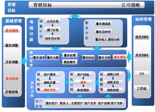 金蝶K/3 WISE精細(xì)化客戶關(guān)系管理解決方案在銷售、采購、倉庫、計(jì)劃、生產(chǎn)管理信息化的基礎(chǔ)上,提供了客戶與商機(jī)管理、服務(wù)管理等管理工具。這一綜合解決方案涵蓋了與客戶經(jīng)營有關(guān)的主要核心業(yè)務(wù),包括: