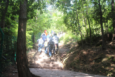 9點15分,大部分客戶都到位了,金辰軟件KIS事業(yè)部負(fù)責(zé)人倪小紅集合大家做了活動說明,強(qiáng)調(diào)活動的意義,同時感謝客戶的積極參與,大體介紹了金蝶云之家和移動應(yīng)用,隨著一聲吹號聲,大家爭先恐后地向尖峰山山頂進(jìn)發(fā),每人手上綁著統(tǒng)一的紅絲帶在一路上顯得格外耀眼,工作人員舉著迎風(fēng)飄揚(yáng)的金蝶標(biāo)志旗告訴大家是金蝶軟件在舉辦活動,很多爬山著豎著大拇指說金蝶軟件真不錯!,活動非常有意義!