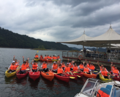 第三個篇章為騎行、皮劃艇的項(xiàng)目,意在挑戰(zhàn)不可能,克服內(nèi)心的恐懼。伴隨著千島湖的湖光山色,清風(fēng)拂面,美景盡收眼底;汗水打濕了衣背,疲累漫延至整個身體,卻依然奮力蹬踏,絕不拖團(tuán)隊(duì)后腿,小身軀卻發(fā)揮大能量。結(jié)束后,很多人感慨到:真沒想到我可以堅(jiān)持下來、我竟然不是最后一個…….