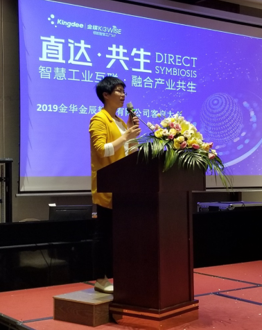 首先由金華金辰軟件有限公司副總經(jīng)理 倪小紅女士致辭,倪總回顧了金蝶的發(fā)展之路,并展望了未來的全新趨勢(shì),表達(dá)了對(duì)到場(chǎng)所有客戶的感謝之情,也對(duì)金華金辰的發(fā)展指明了方向。