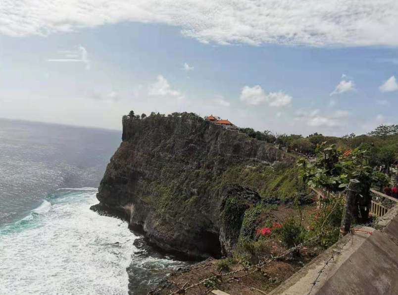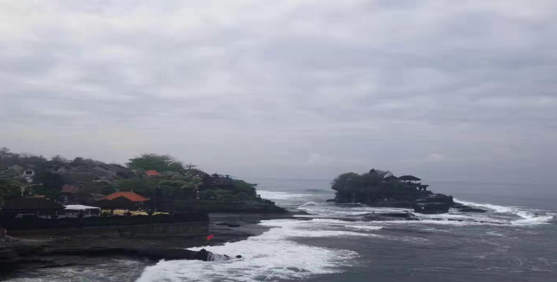 睡了一覺后,終于擺脫了暈機的痛苦。在餐廳里享用了一頓中西合璧的自助早餐,正式開啟旅程。第一站前往海神廟。海神廟是巴厘島的地標(biāo)性景點,它獨具一格的坐落在離海不遠的巨巖上,守護著巴厘島和熱愛著它的人們。潮漲時,海神廟獨立于大海之上,遠看就像一頂海上的皇冠;退潮時,海神廟又與陸地連接,供人祭拜參觀。來巴厘島,豈能不到海神廟。寺廟對岸有一座觀景亭,可以遠眺落日景致,看陽光灑滿印度洋,金色的光線勾勒出海神廟古典而又充滿浪漫情調(diào)的樣子。