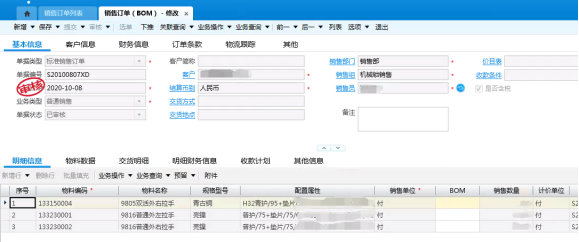 因門鎖的特殊性,門鎖的配置需求較多,銷售接單需在訂單中直接體現(xiàn)產(chǎn)品的配置信息以提供生產(chǎn)計劃進(jìn)行排產(chǎn),所以在物料中啟用了配置屬性,并在銷售訂單中直接選擇配置屬性,來體現(xiàn)產(chǎn)品配置,并將產(chǎn)品的配置屬性貫穿到所有單據(jù)中包括即時庫存及相應(yīng)的報表。