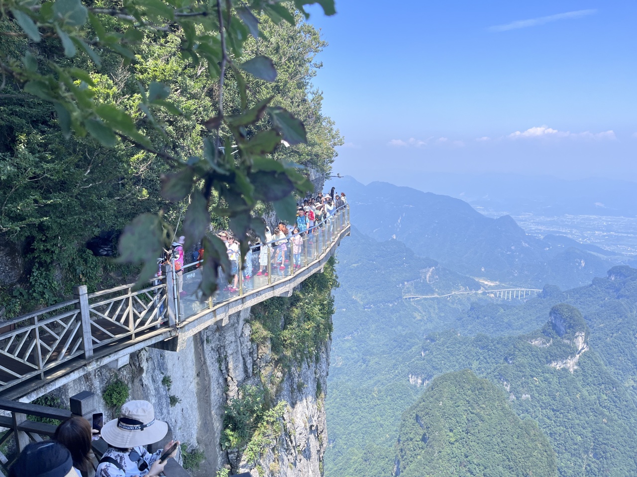 第四天,驅(qū)車前往張家界新傳奇——天門山,這里集奇、特、神與一體。大家乘坐世界最長的單線循環(huán)式高山客運(yùn)索道奔赴山頂,一步登天,舉世無雙,俯瞰張家界全景,感嘆九曲通天的空中花園;大小朋友一起踏上懸空玻璃棧道,體驗(yàn)高空極限;天門洞讓人感受到了大自然的鬼斧神工,無詞形容,唯有壯觀。