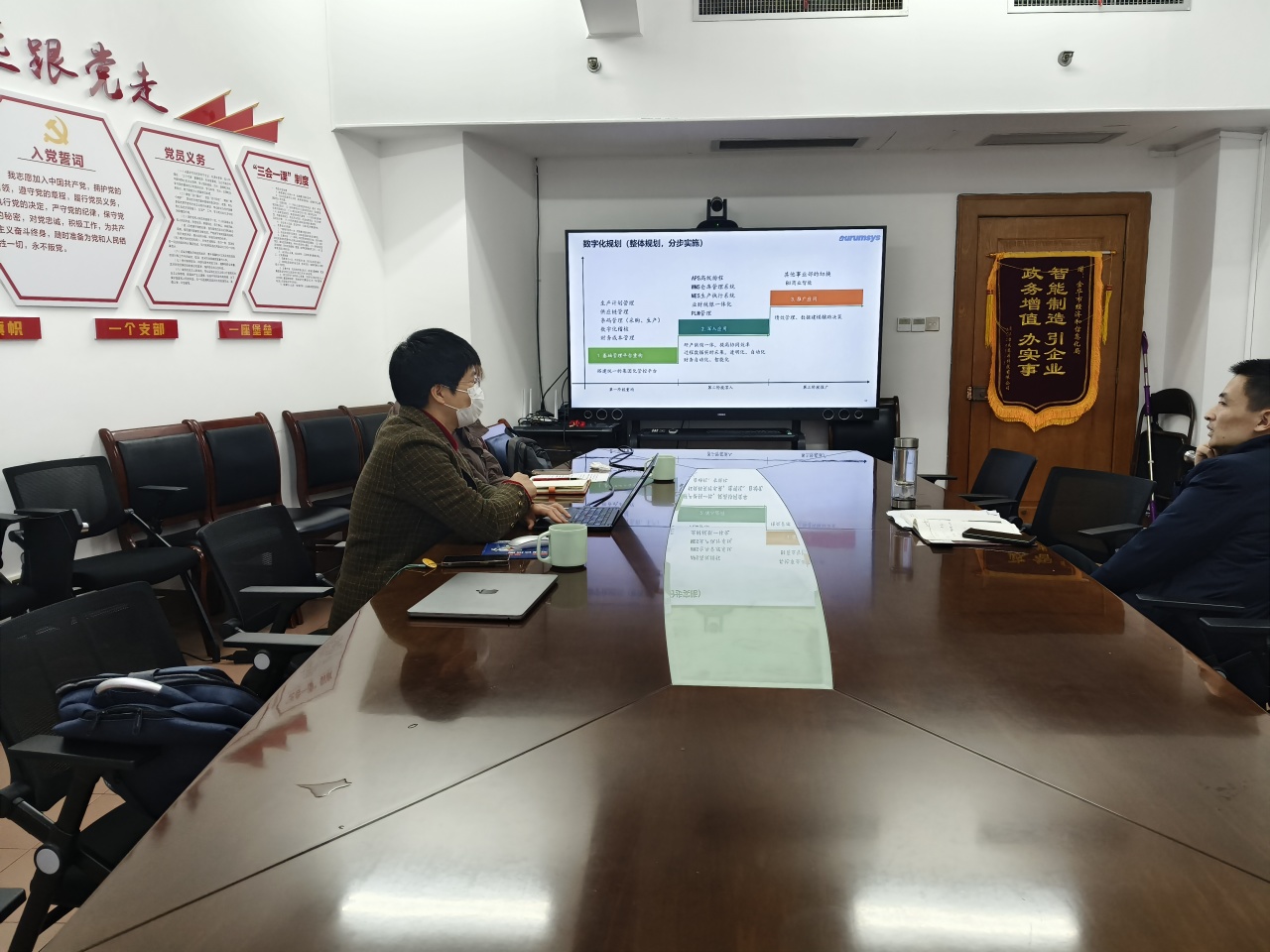 和金華市經(jīng)信局?jǐn)?shù)字經(jīng)濟(jì)處施處長做了匯報(bào)和交流,施處對(duì)金華金辰軟件有限公司目前取得的成績給予了認(rèn)